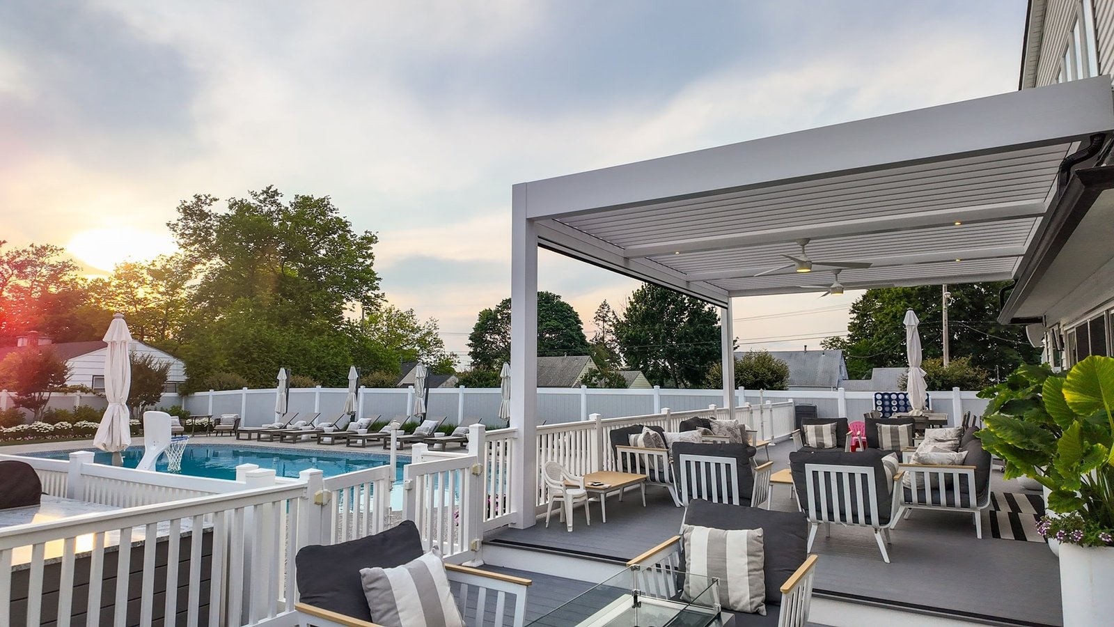 Poolside Motorized Pergola Long Branch, New Jersey About Project: Location: Long Branch, New Jersey Project Type: Outdoor Living / Shade Structure Installation Client Goal: A