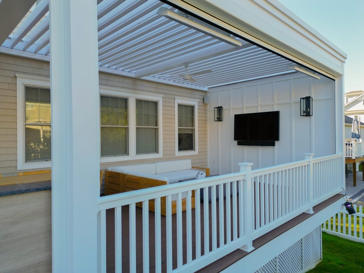 Deck Mounted Louvered Roof System Monmouth Beach, New Jersey About Project This client was looking for a deck mounted louvered roof system with a custom