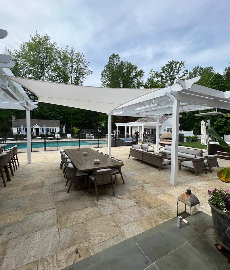 This client had a vast outdoor patio space with no natural shade. The client wanted something functional but also something with style to add to there patio space. We actually worked with a well known influencer in the area Mar Jennings, featured on the well known T.V. Show Life On Mars, we were featured in one of the makeover episodes. This was an amazing collaboration for us as we got to know Mar and become more familiar with the the local community of Westport as a result.